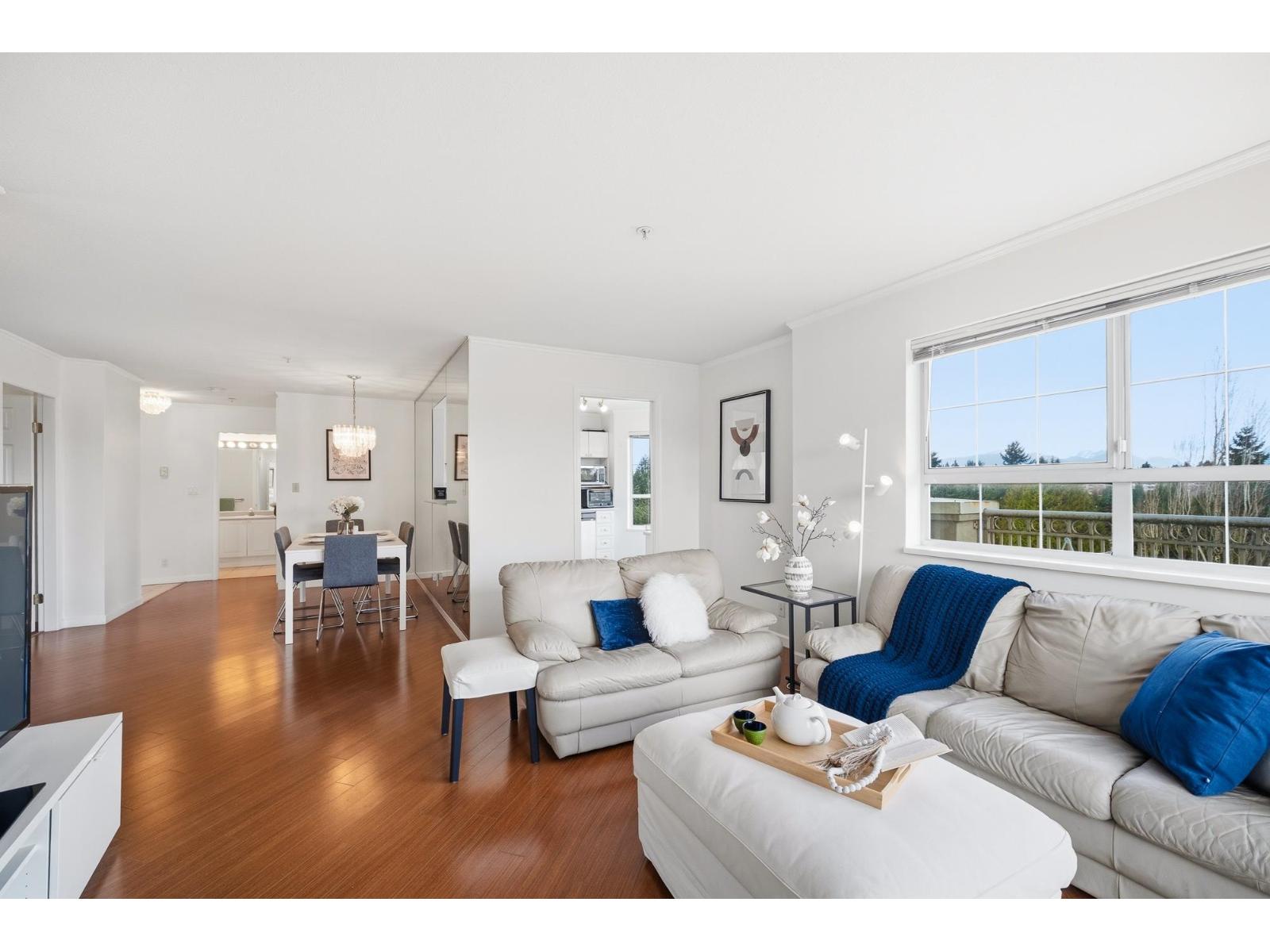 Enjoy spectacular penthouse views of the North Shore Mountains, including stunning snow-capped scenery, along with breathtaking sunrises and sunsets every day. This top-floor, northeast-facing corner unit offers expansive views from every room and an abundance of natural light throughout. The home features a spacious kitchen, cozy gas fireplace, wraparound balcony, and convenient in-suite laundry, and includes 2 parking stalls. Ideally located within walking distance to Guildford Town Centre and Guildford Place retail plaza. *OPEN HOUSE: MARCH 28 (SAT) & MARCH 29 (SUN) 2-4 PM* (id:64938)